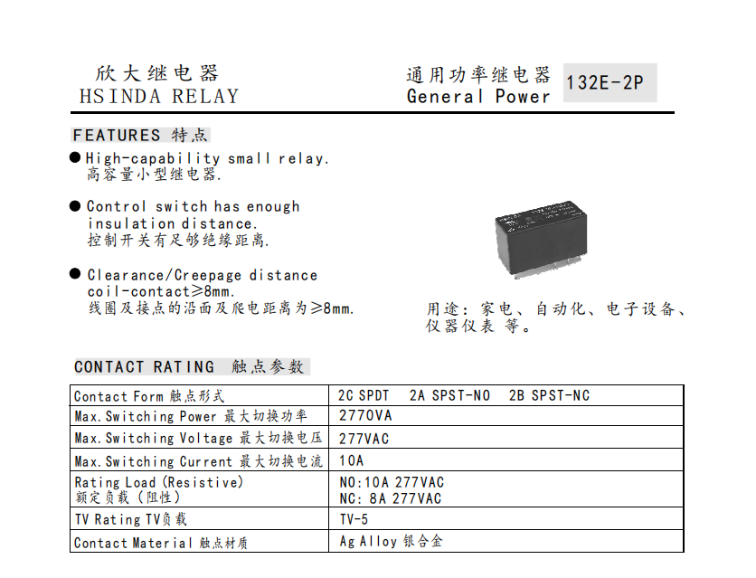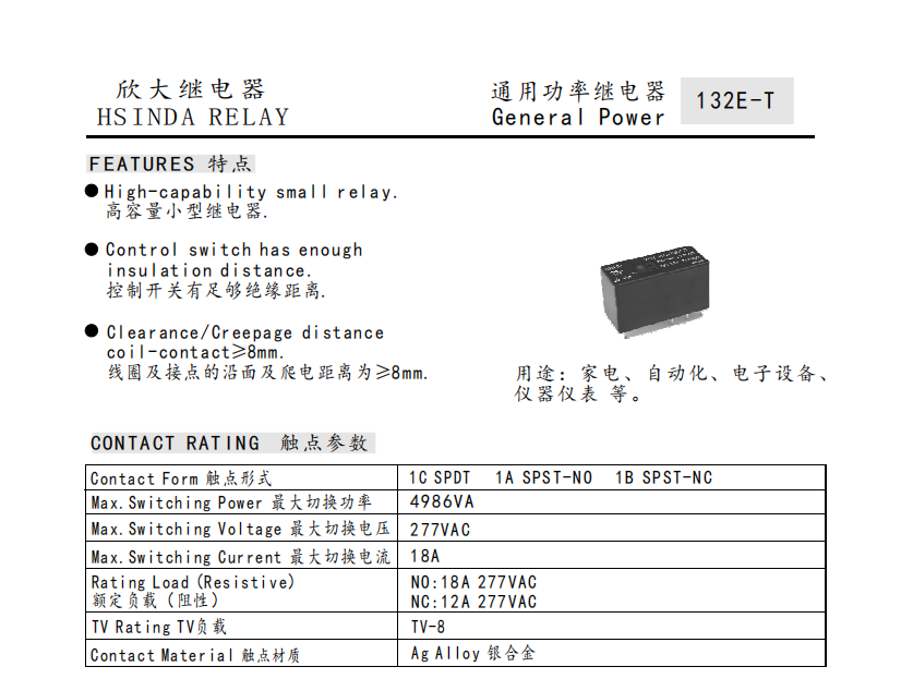 通用功率继电器 132E-T