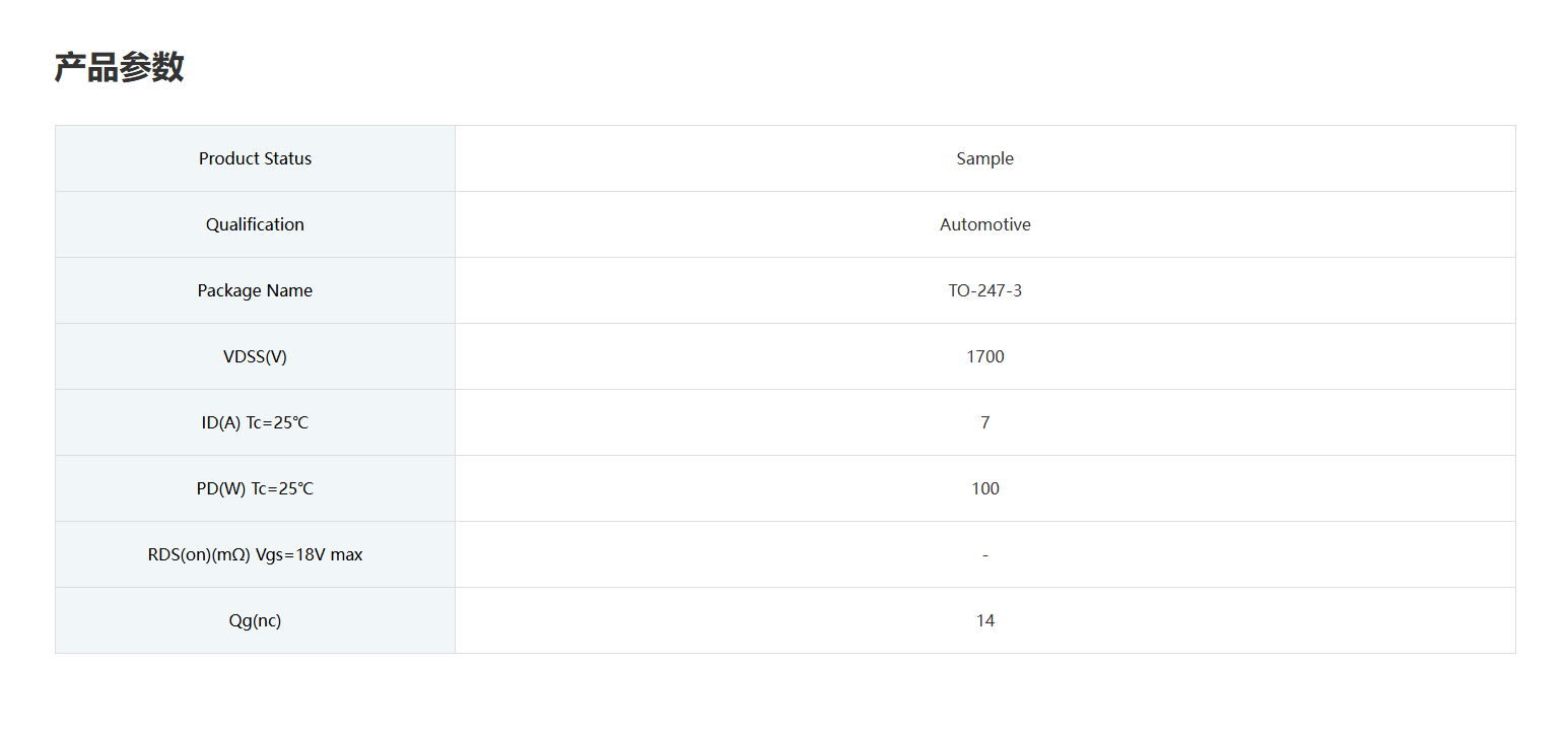 SiC 车规类SiC MOSFET ZMCA100KR170LC3
