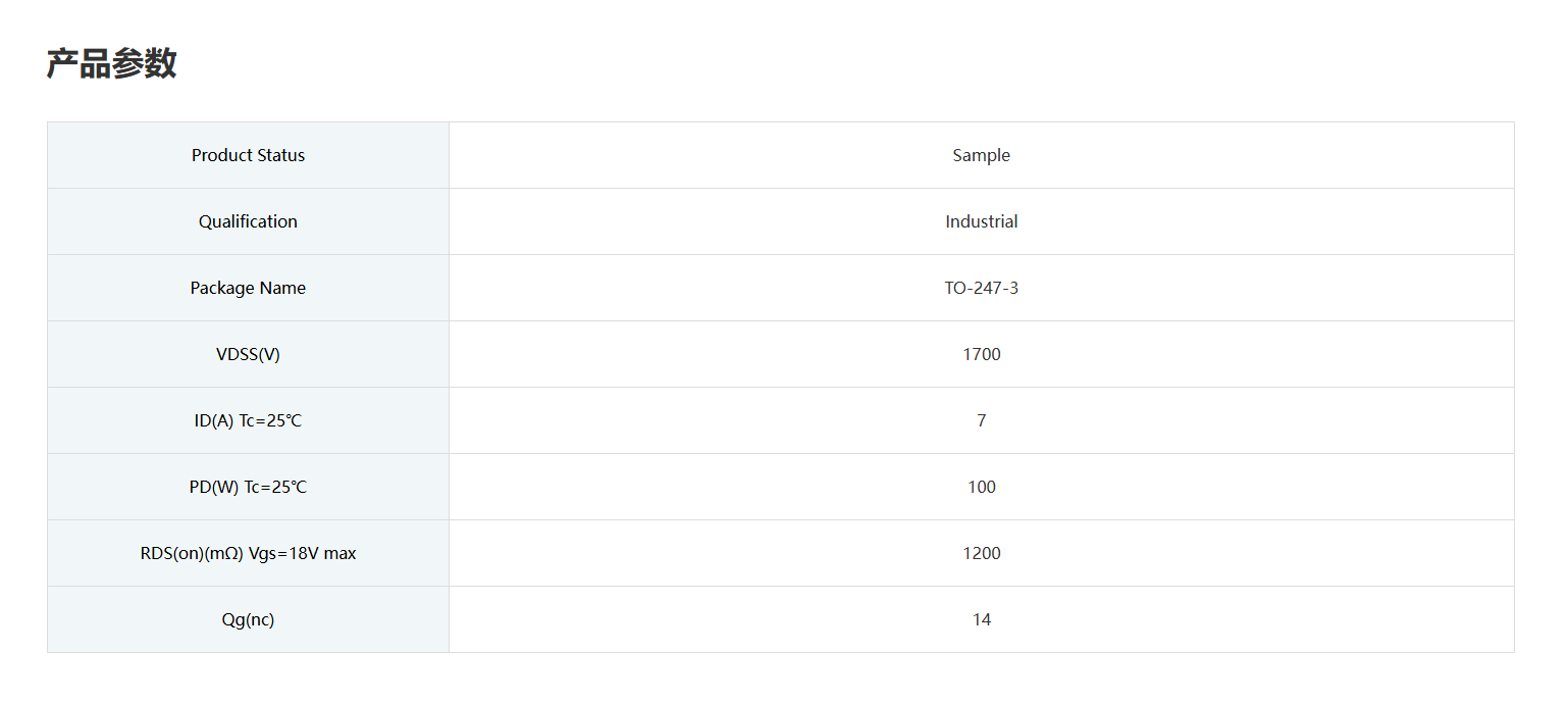 SiC 工业消费类SiC MOSFET ZMC100KR170C3